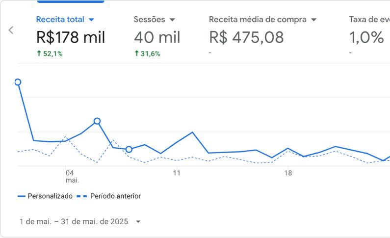 O resultado é consequência de um planejamento bem executado. Garantimos um time dedicado, especializado e com processos validados para escalar e-commerces. O sucesso depende também da qualidade do produto, da oferta e da execução da sua parte como cliente.
